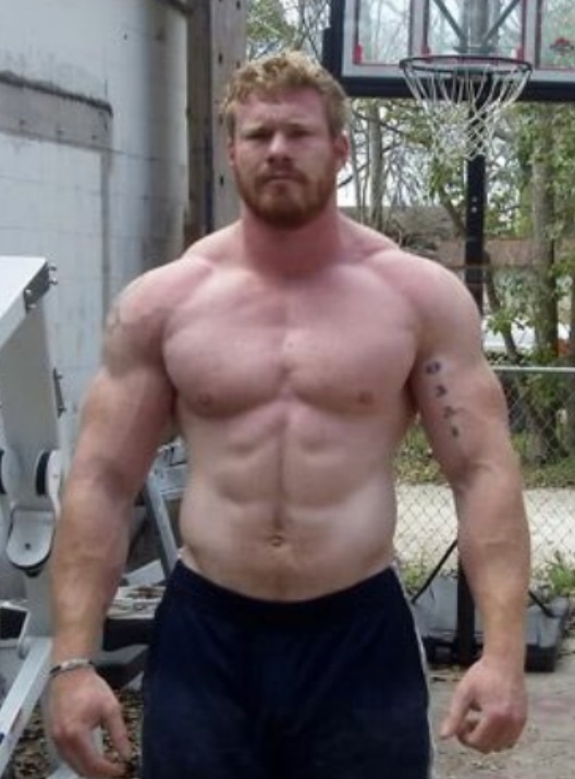 A muscular, freckles, ginger man who stands at around 7.5 feet.